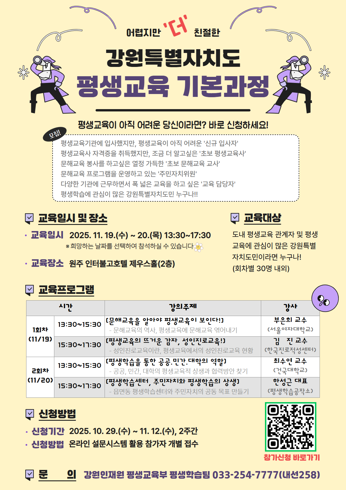 | 강원특별자치도 평생교육 기본과정 개최 안내 | |