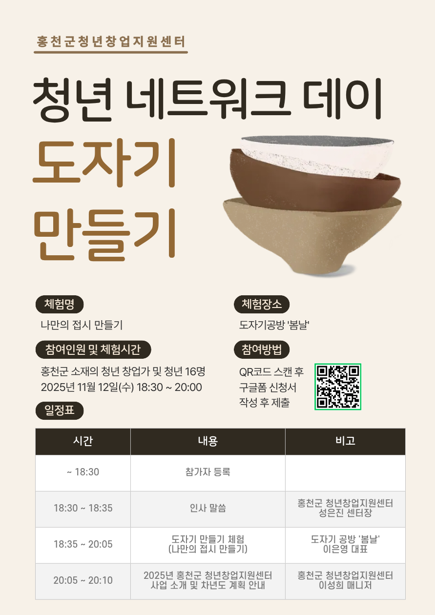 모집 2025년 청년 네트워크 데이 '도자기 만들기' 체험 프로그램 참가자 모집