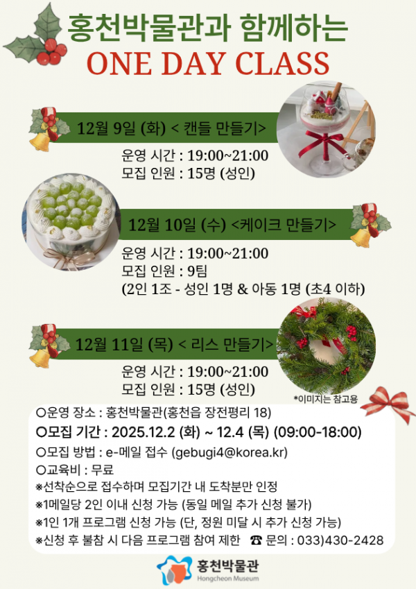 "홍천박물관과 함께 하는 원데이 클래스"안내